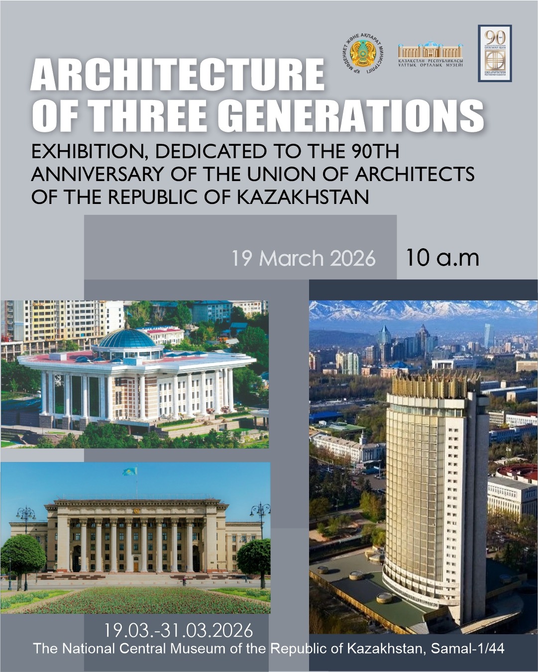 The National Central Museum of the Republic of Kazakhstan, in conjunction with the Union of Architects of the Republic of Kazakhstan, will open the exhibition «ARCHITECTURE OF THREE GENERATIONS», dedicated to the 90th anniversary of the Union of Architects of the Republic of Kazakhstan, on 19 March 2026 at 10:00 a.m.
