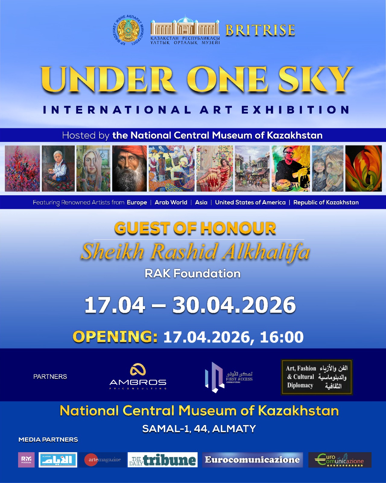 The National Central Museum of the Republic of Kazakhstan and Britrise Ltd (London, UK) will open the international contemporary art exhibition «UNDER ONE SKY» on April 17, 2026, at 4:00 PM.