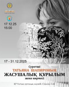 2025 жылғы 17 желтоқсанда сағат 15:00-де Қазақстан Республикасының Ұлттық орталық музейінде суретші Татьяна Шапироның «ЖАСУШАЛЫҚ ҚҰРЫЛЫМ» атты жеке көрмесінің салтанатты ашылуы өтеді.