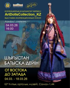 2026 жылғы 4 наурыз күні сағат 16:00-де Қазақстан Республикасының Ұлттық орталық музейінде «Art Dolls Collection_KZ» (Арт Долс Коллекшн KZ) шығармашылық бірлестігінің «Шығыстан Батысқа дейін» атты коллекциялық қуыршақтар көрмесінің ашылуы өтеді.