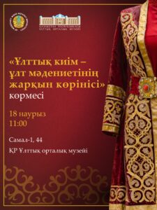 2026 жылғы 18 наурызда сағат 11:00-де Қазақстан Республикасы Ұлттық орталық музейінде «Наурызнама» онкүндігінің Ұлттық киім күніне орай «Ұлттық киім – ұлт мәдениетінің жарқын көрінісі» атты көрменің салтанатты ашылуы өтеді.
