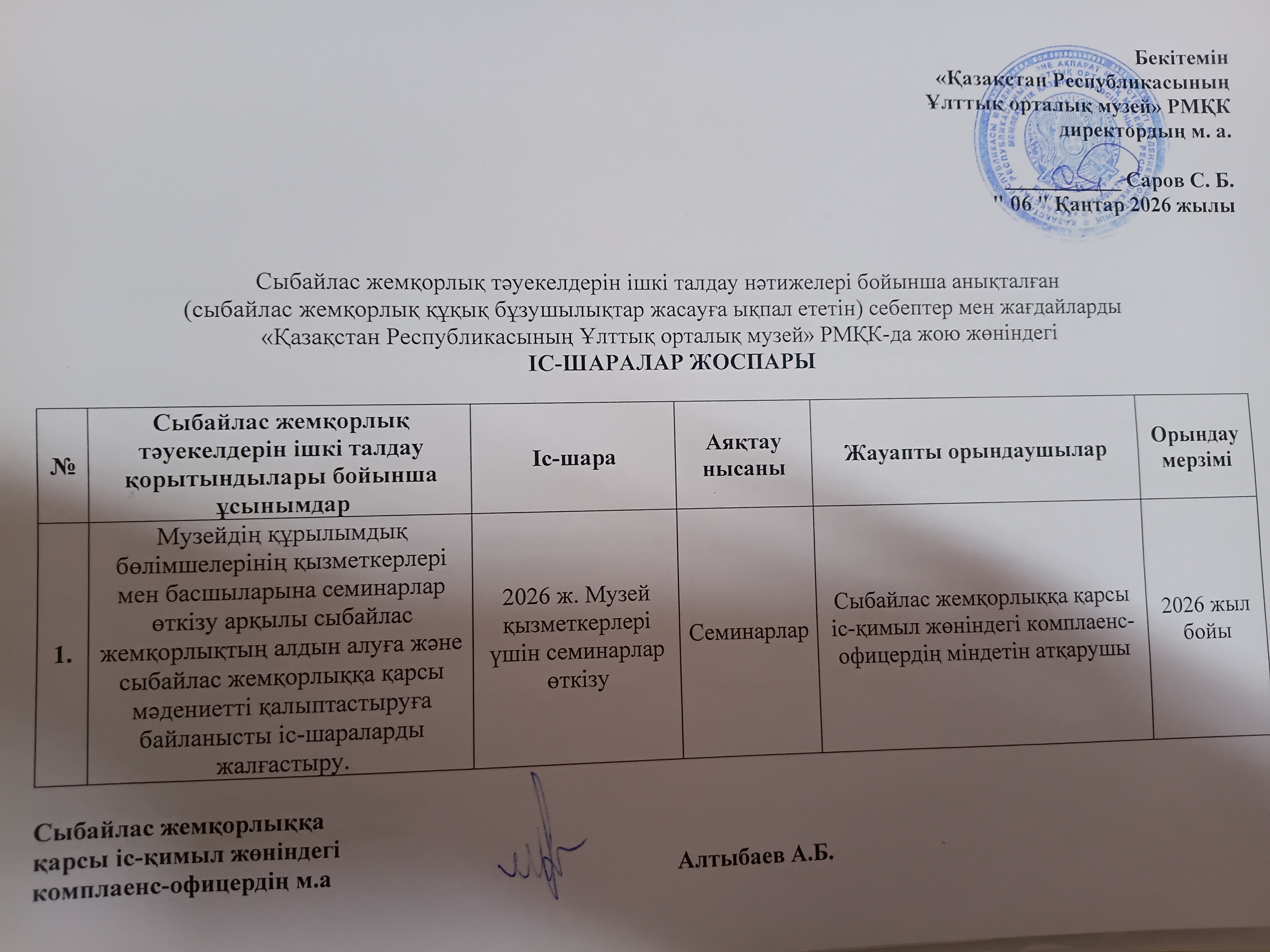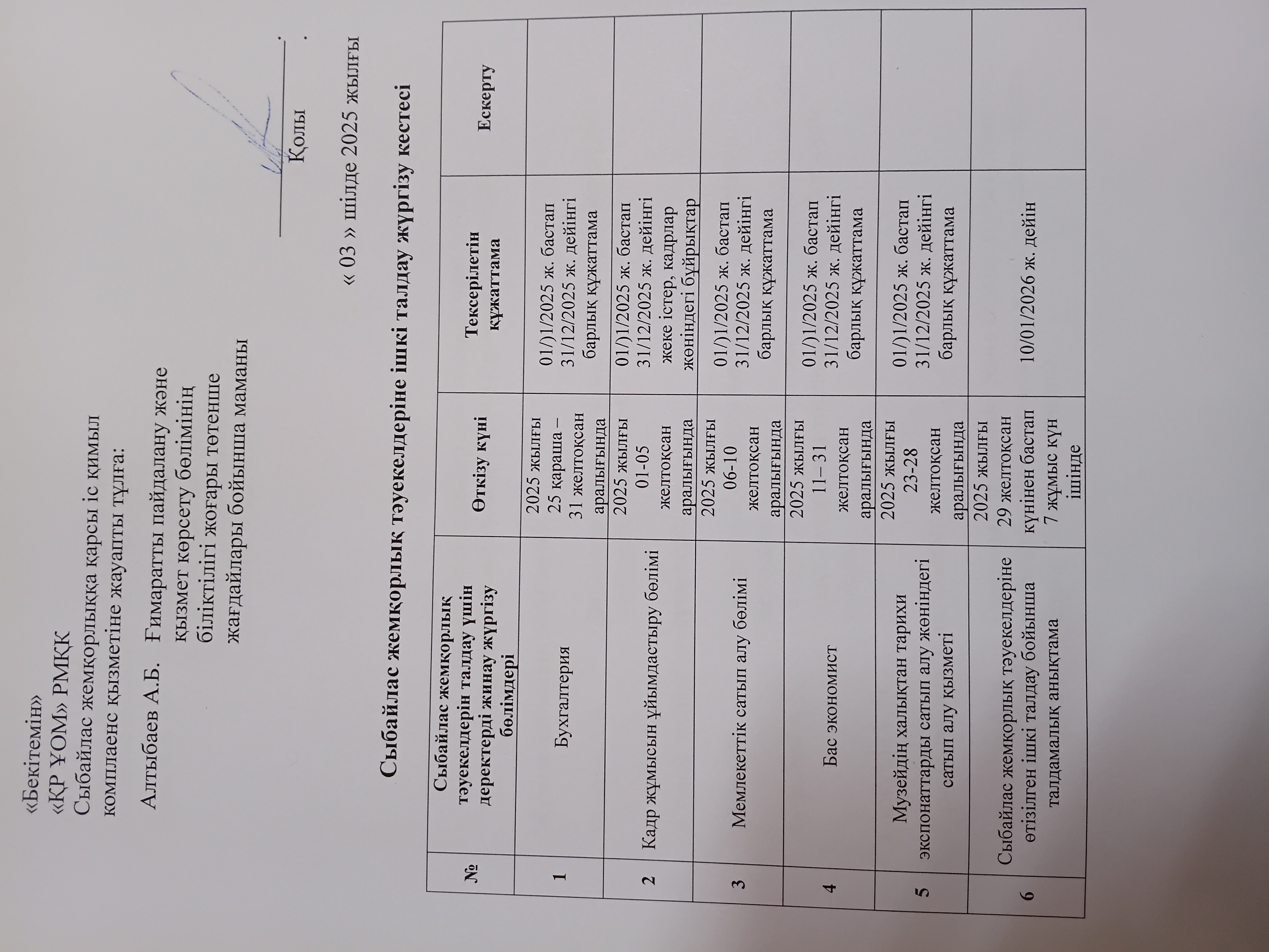 2025 жылға арналған сыбайлас жемқорлық тәуекелдерін ішкі талдау жүргізу жоспары