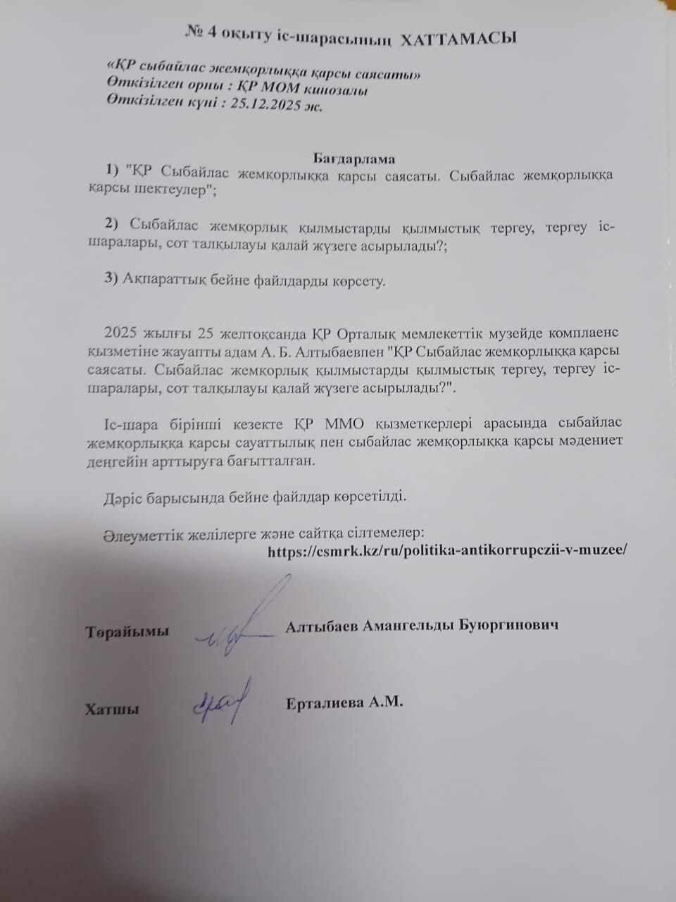 31.03.2025 ж. Жоспарлы лекция «ҚР сыбайлас жемқорлыққа қарсы саясаты»