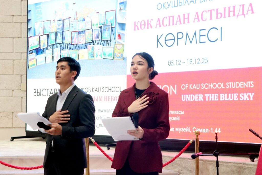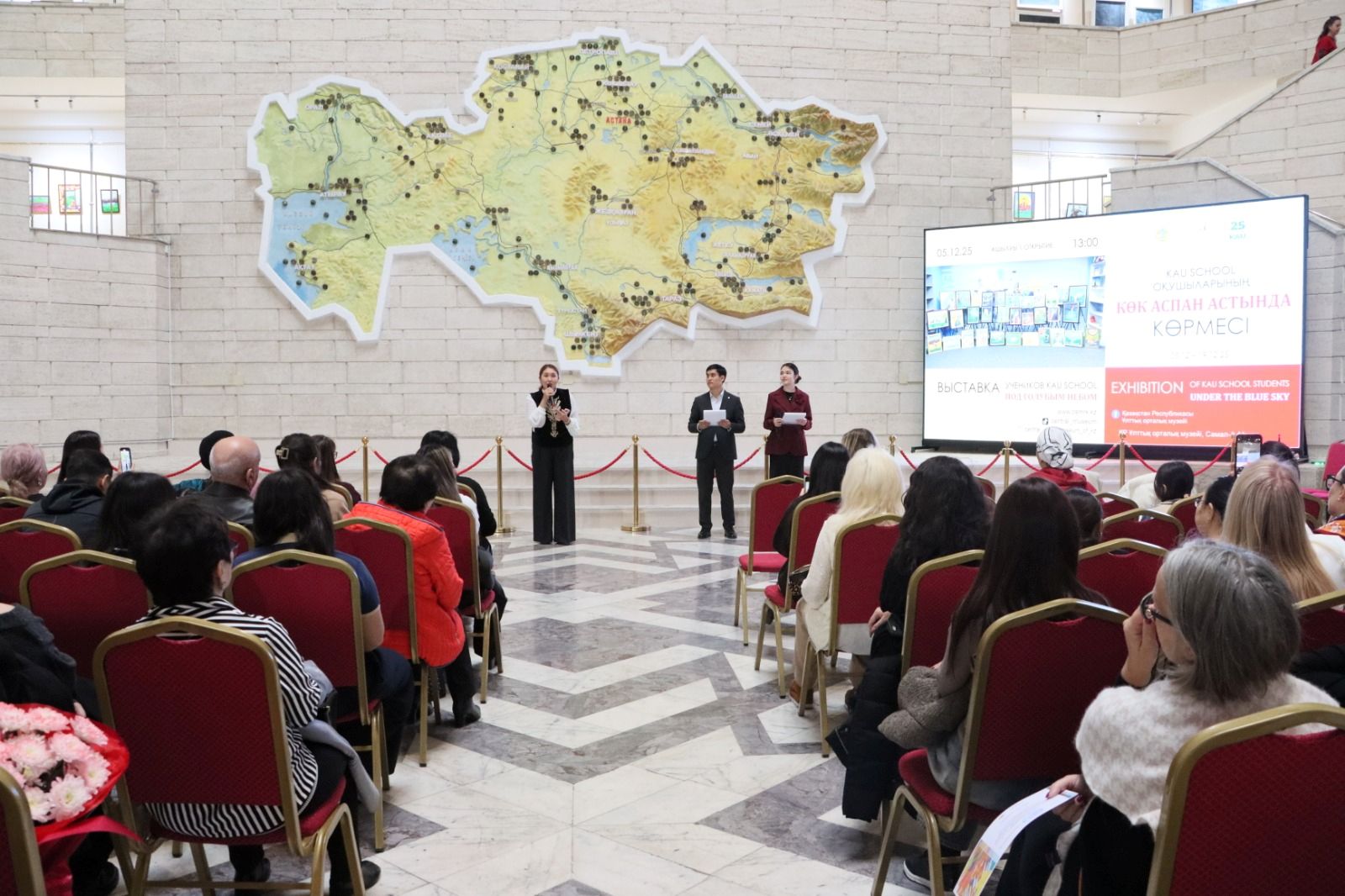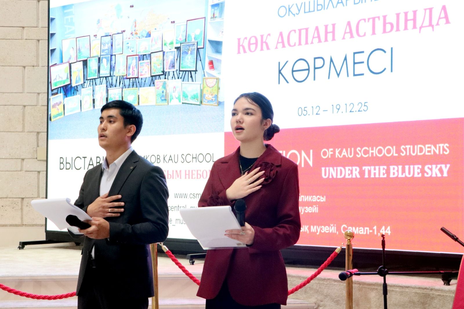 5 декабря 2025 года в Национальном Центральном музее Республики Казахстан состоялось торжественное открытие выставки учащихся школы «KAU School» — «Көк аспан астында». Экспозиция приурочена ко Дню Независимости Республики Казахстан. Независимость — это фундамент, на котором строится настоящее и будущее страны; это свобода творить, исследовать, учиться и созидать. Именно эту идею воплощают работы учеников и преподавателей школы КАУ — произведения, выполненные с вдохновением, уважением к истории и искренней любовью к Родине.