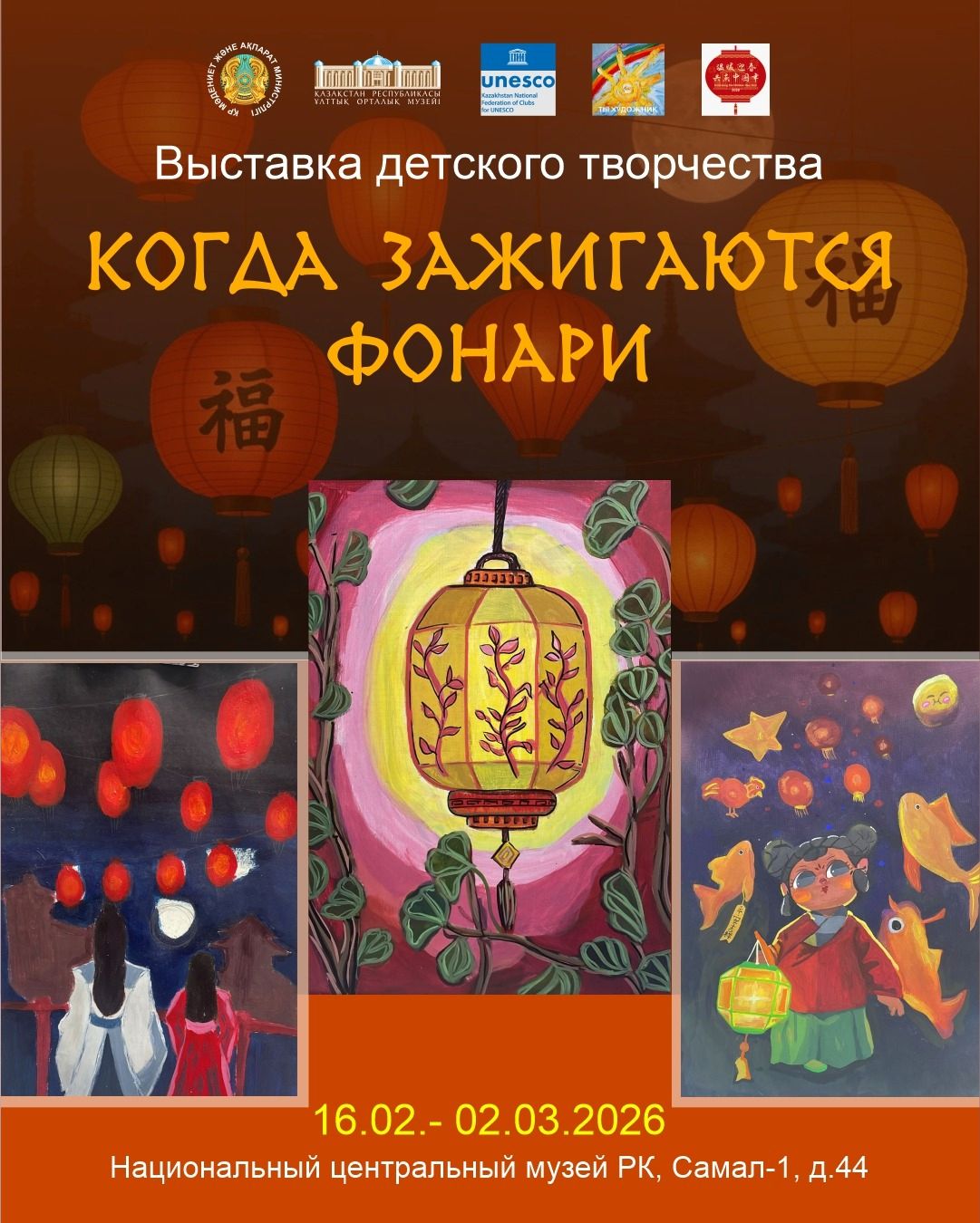 C 16 февраля по 2 марта 2026 года Национальный Центральный музей Республики Казахстан представляет выставку детского творчества «Когда зажигаются фонари», приуроченную к одному из самых поэтичных и значимых традиционных праздников китайской культуры — Празднику фонарей.