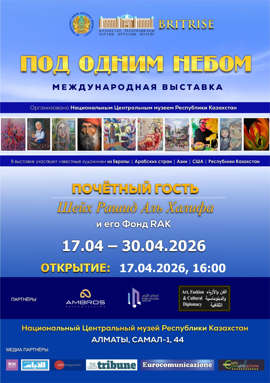 Национальный центральный музей Республики Казахстан совместно с компанией Britrise Ltd (Лондон, Великобритания) открывает международную выставку современного искусства «Под одним небом» 17 апреля 2026 года в 16:00.