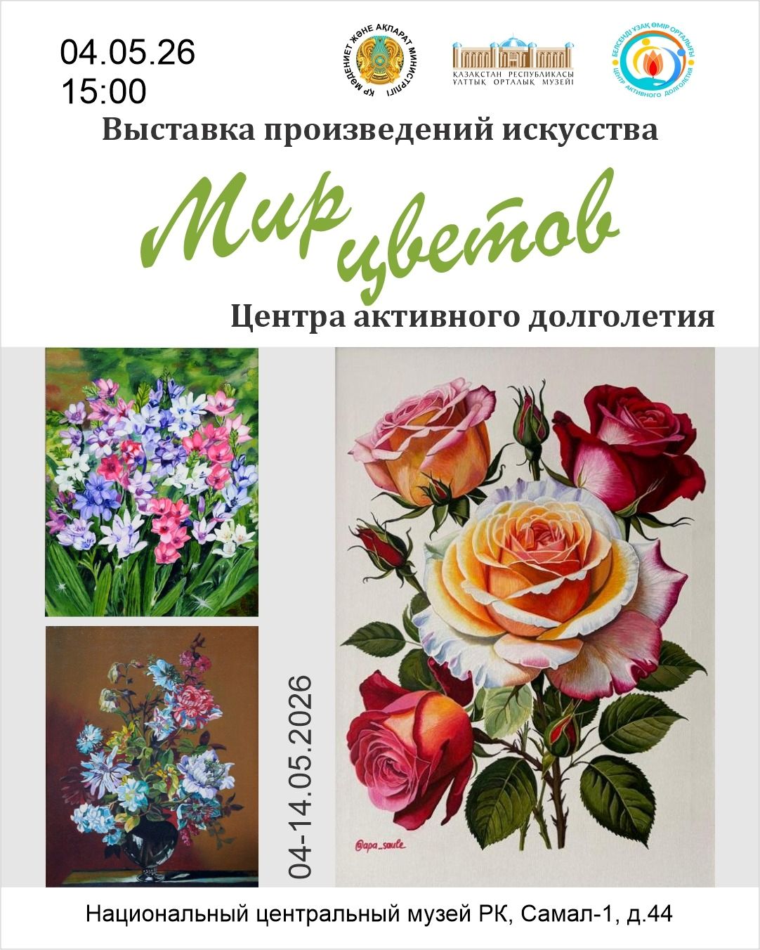 4 мая 2026 г. в 15.00 ч. в Национальном центральном музее Республики Казахстан открывается выставка художественных работ «МИР ЦВЕТОВ», подготовленная участниками Центра активного долголетия г. Алматы.